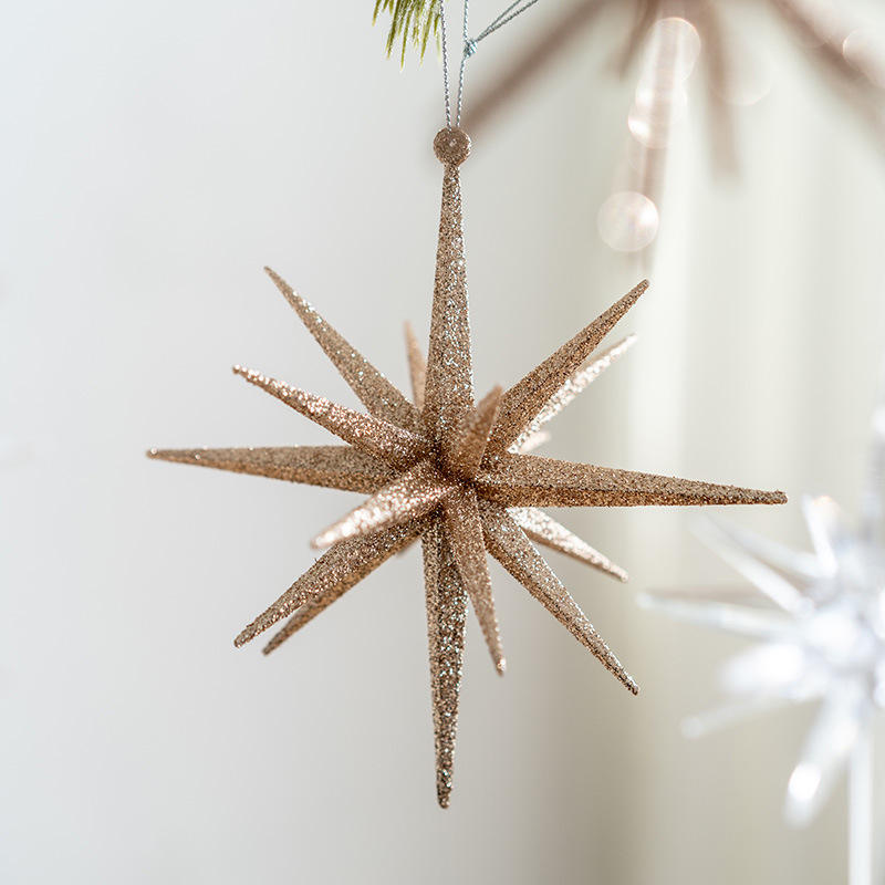 เครื่องประดับรูปดาวสีทองแบบกลิตเตอร์พลาสติกเป็นมิตรกับสิ่งแวดล้อมสำหรับตกแต่งต้นคริสต์มาส