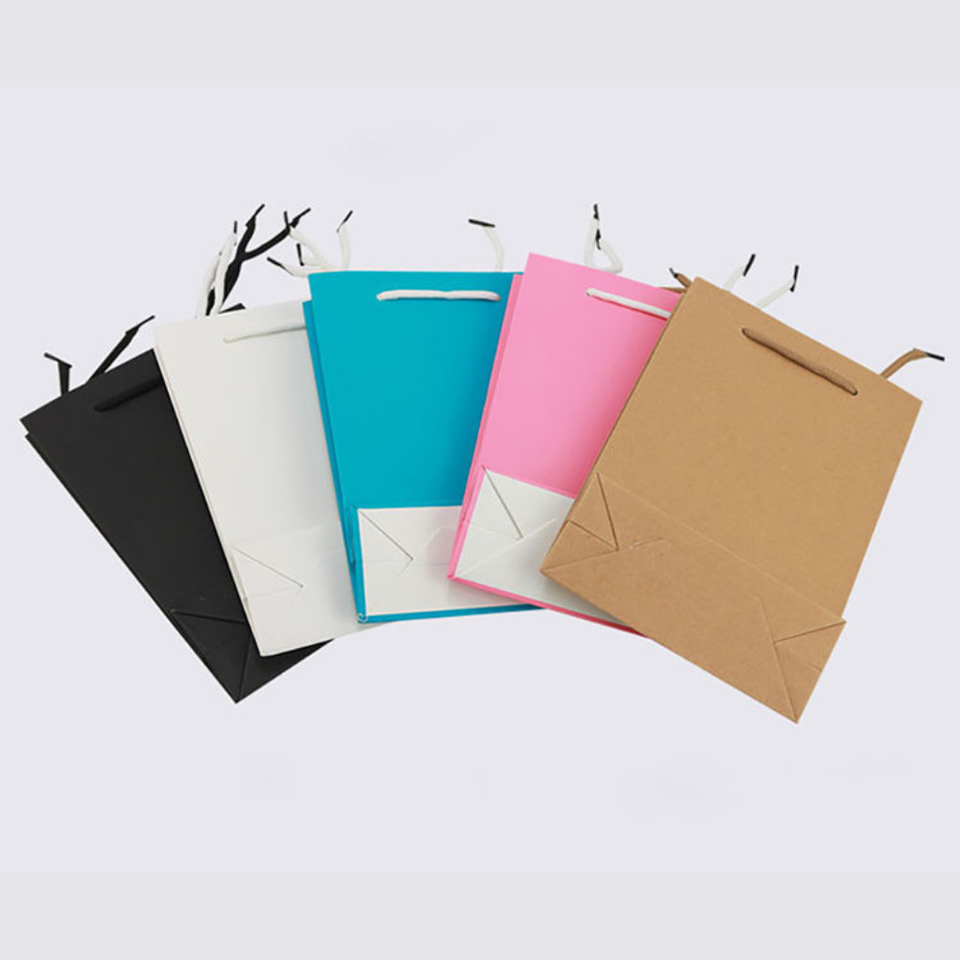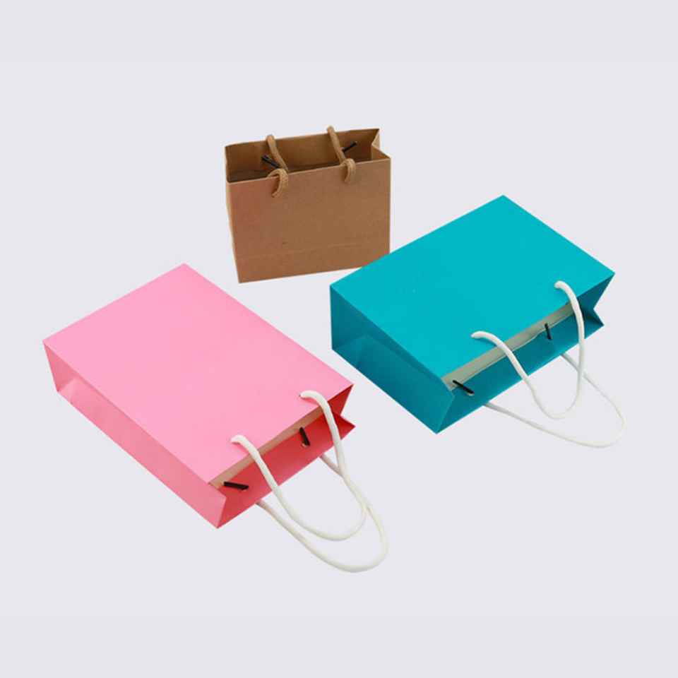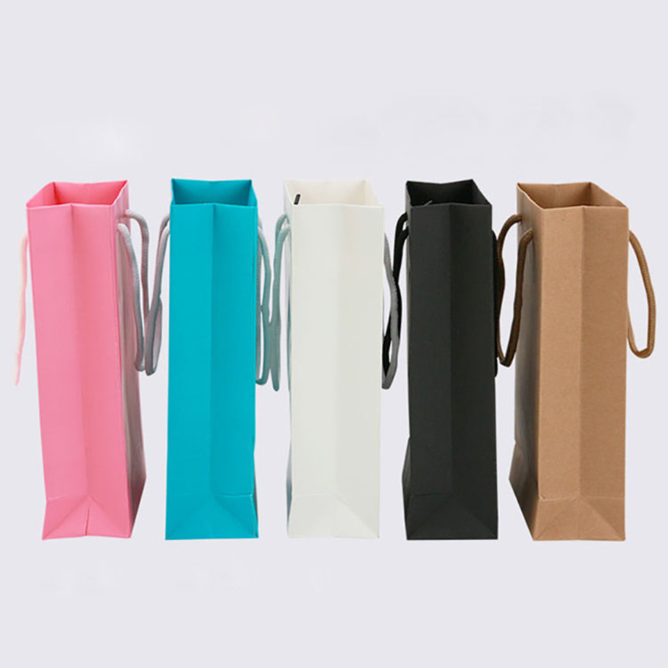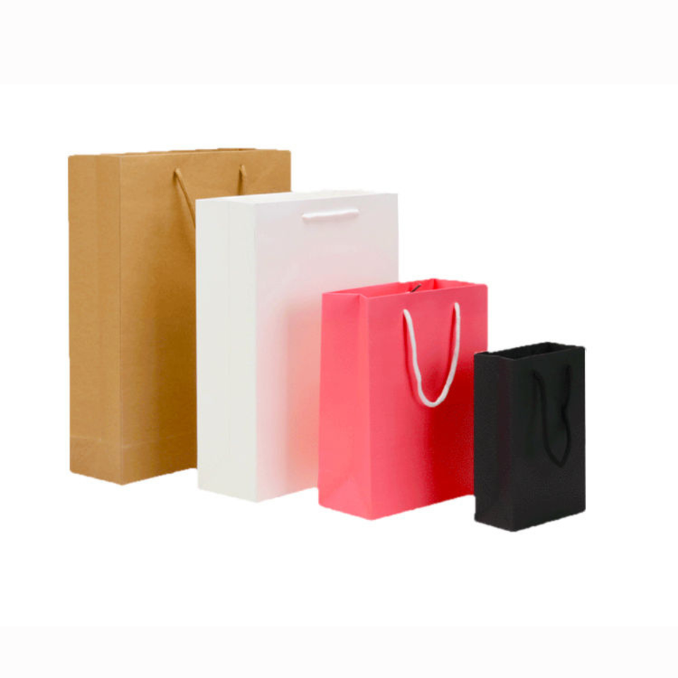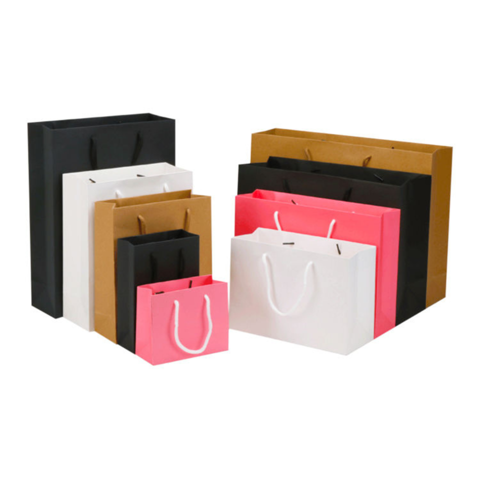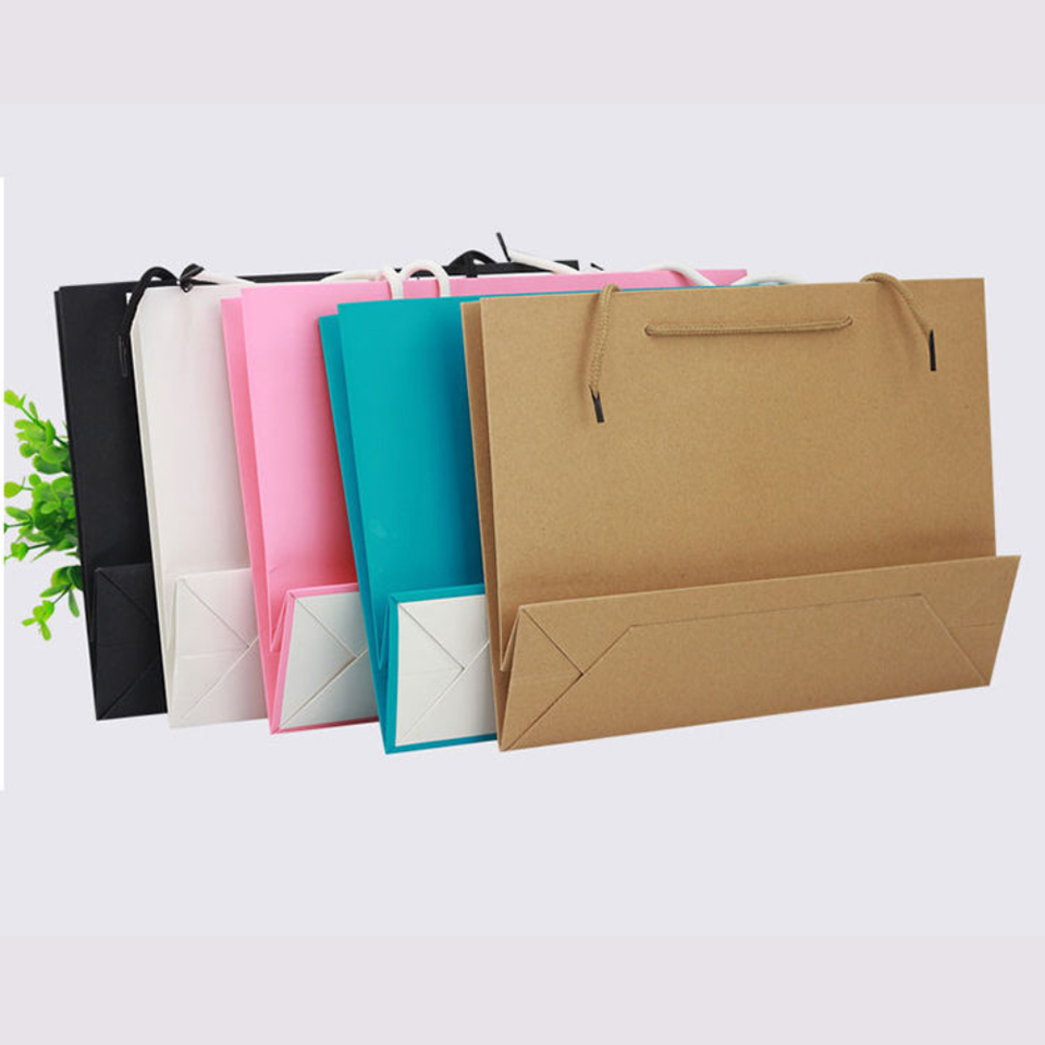 ถุงกระดาษคราฟท์รีไซเคิลรักษ์โลกแบบกำหนดเอง พร้อมเคลือบลามิเนต หูหิ้วสีพื้นทรงสี่เหลี่ยม สำหรับบรรจุภัณฑ์ของขวัญเสื้อผ้าหรูหรา