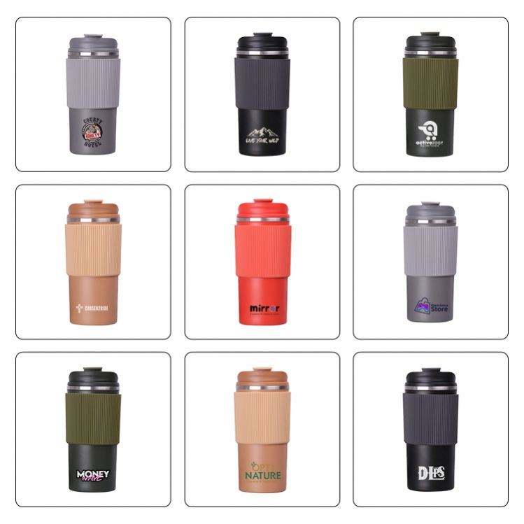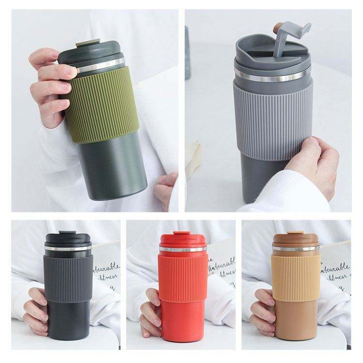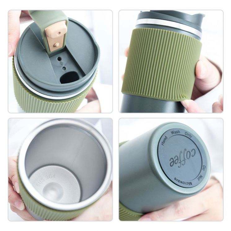 แก้วกาแฟแบบพกพา สแตนเลสสตีลสองชั้น เก็บความร้อน-เย็น พร้อมฝาปิดซิลิโคน เป็นมิตรต่อสิ่งแวดล้อม ใช้ซ้ำได้