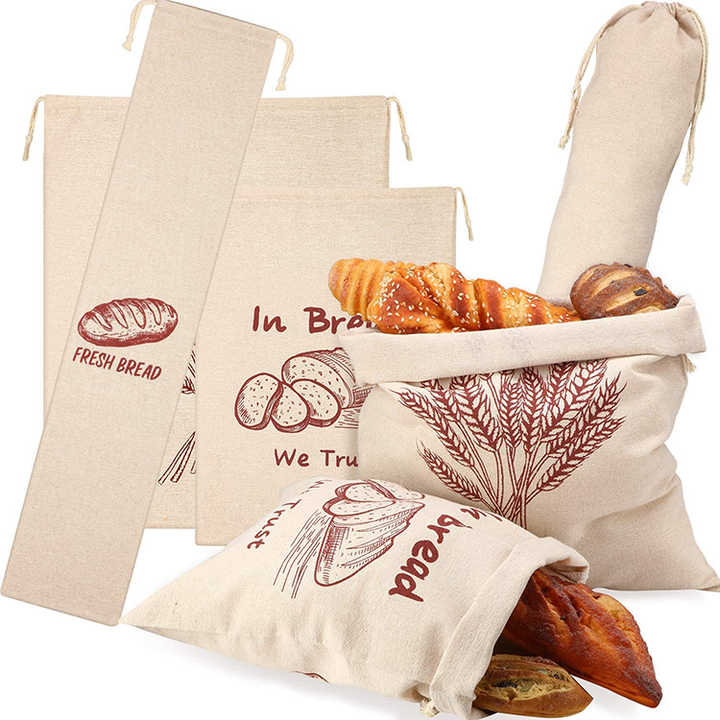 ถุงขนมปังผ้าลินินผ้าฝ้ายแบบใช้ซ้ำได้