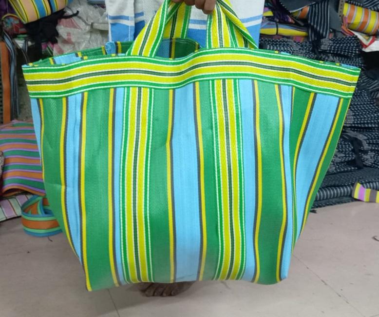 กระเป๋าช้อปปิ้งแฟชั่นคุณภาพสูง ลายทาง ทอจากพลาสติกรีไซเคิล ใช้ซ้ำได้ เป็นมิตรกับสิ่งแวดล้อม ผลิตด้วยมือ เหมาะสำหรับใช้ที่ชายหาด