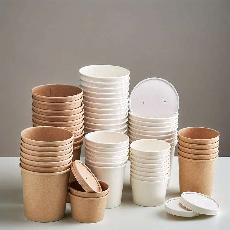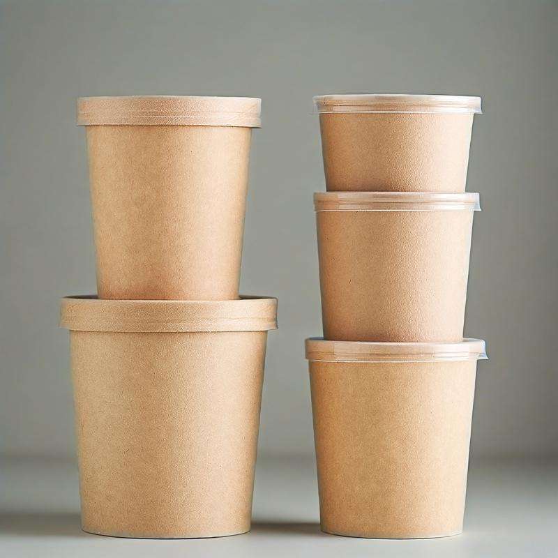 ถังกระดาษคราฟท์กันน้ำแบบกำหนดเองเป็นมิตรกับสิ่งแวดล้อมพร้อมฝาปิดสำหรับบรรจุอาหารประเภทก๋วยเตี๋ยว โจ๊ก ซุปร้อน