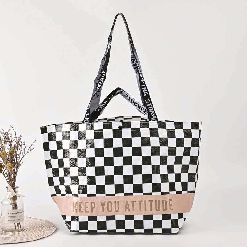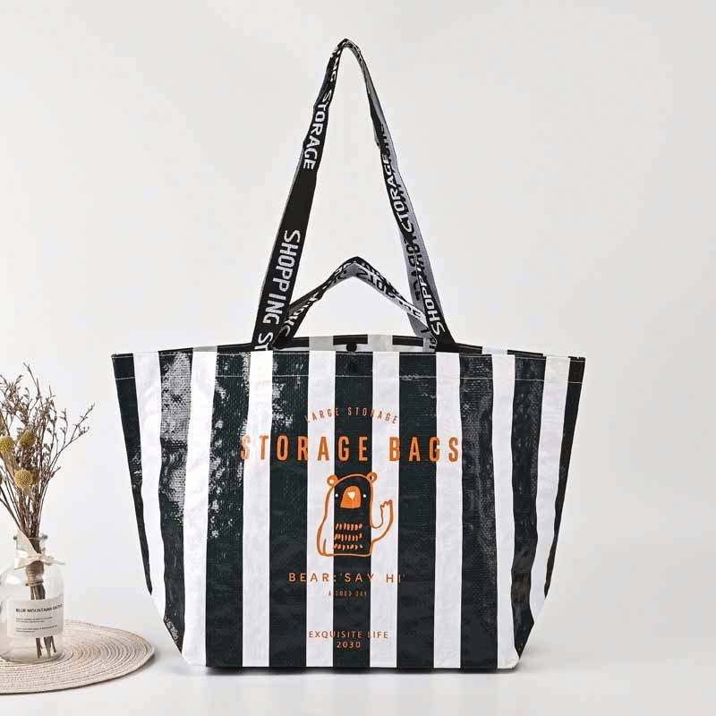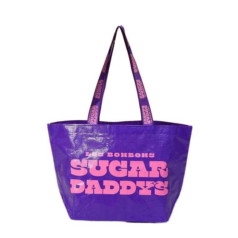 กระเป๋าช้อปปิ้งผ้าทอแบบกำหนดเอง เป็นมิตรกับสิ่งแวดล้อม พร้อมโลโก้พิมพ์สีเคลือบเงา ของขวัญโฆษณา กระเป๋าผ้า PP ทอ ปรับแต่งได้