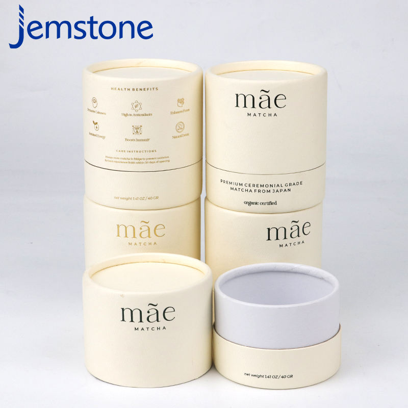 กล่องของขวัญทรงกระบอกทำจากกระดาษแข็งแบบกำหนดเอง เป็นมิตรกับสิ่งแวดล้อม บรรจุผงมัทฉะ เกรดอาหาร บรรจุภัณฑ์แบบหลอดกระดาษคราฟท์สำหรับชาผสม