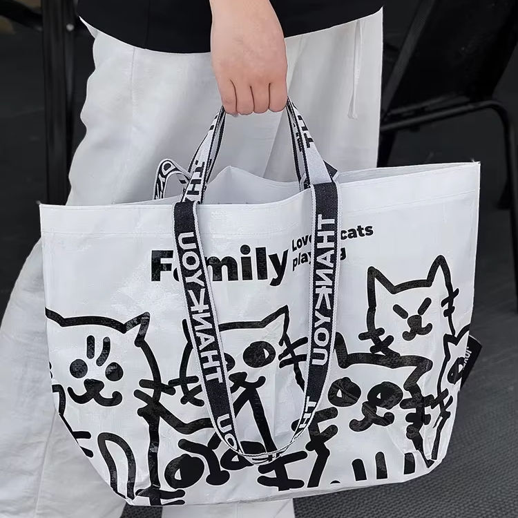 ถุงช้อปปิ้งผ้า PP แบบใช้ซ้ำได้เป็นมิตรต่อสิ่งแวดล้อมถุงช้อปปิ้งแบบถักกันน้ำใช้ในชีวิตประจำวันได้ตามต้องการพร้อมที่ปิดไหล่