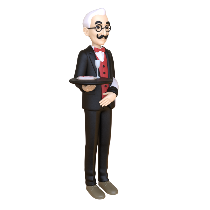 รูปปั้นบริกรเรซินสำหรับผู้สูงอายุรูปปั้นบริกรขนาดเท่าคนสูงอายุที่กำหนดได้เองสำหรับแสดงในร้านอาหารและตกแต่งบ้าน