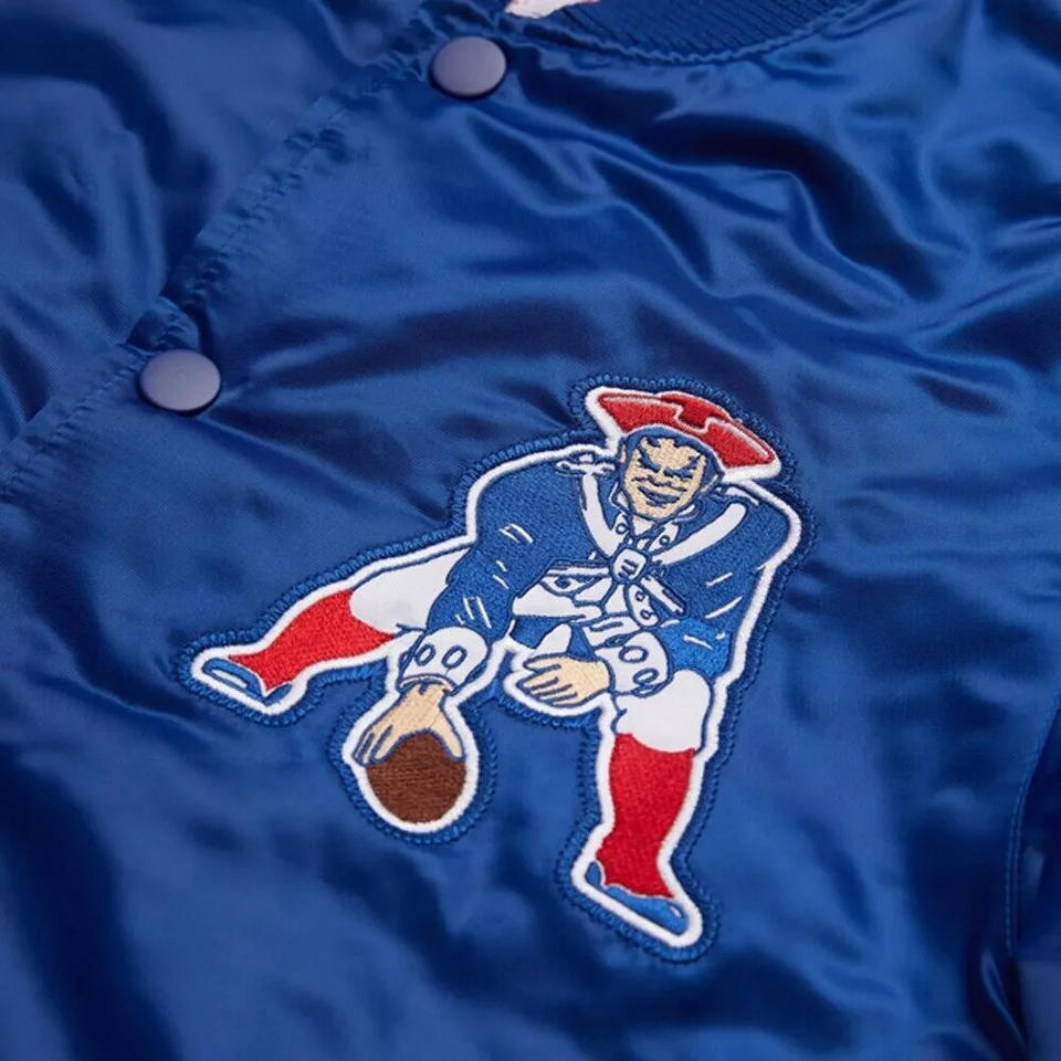 เสื้อแจ็คเก็ตวาร์ซิตี้สีน้ำเงินซาตินแบบกำหนดเองสำหรับผู้ชาย แจ็คเก็ตบอมเบอร์แต่งขอบสีแดง ขายส่งชุดยูนิฟอร์มเบสบอลแบบ Letterman เสื้อผ้ากีฬา