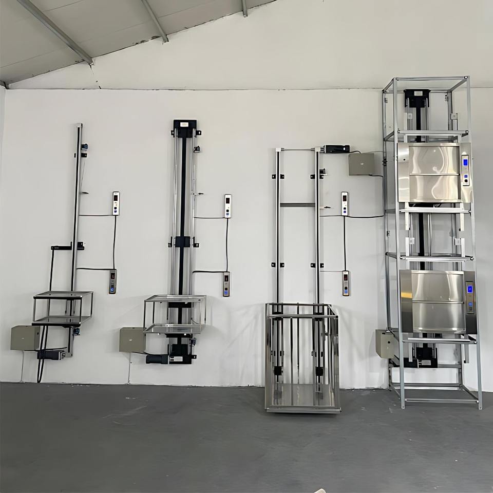 ลิฟต์ส่งอาหารไฟฟ้าแบบกำหนดเอง รับน้ำหนัก 75 กก. 150 กก. ลิฟต์อุตสาหกรรมแบบไร้เฟือง สำหรับร้านอาหาร อพาร์ทเมนต์ ขนาดเล็ก
