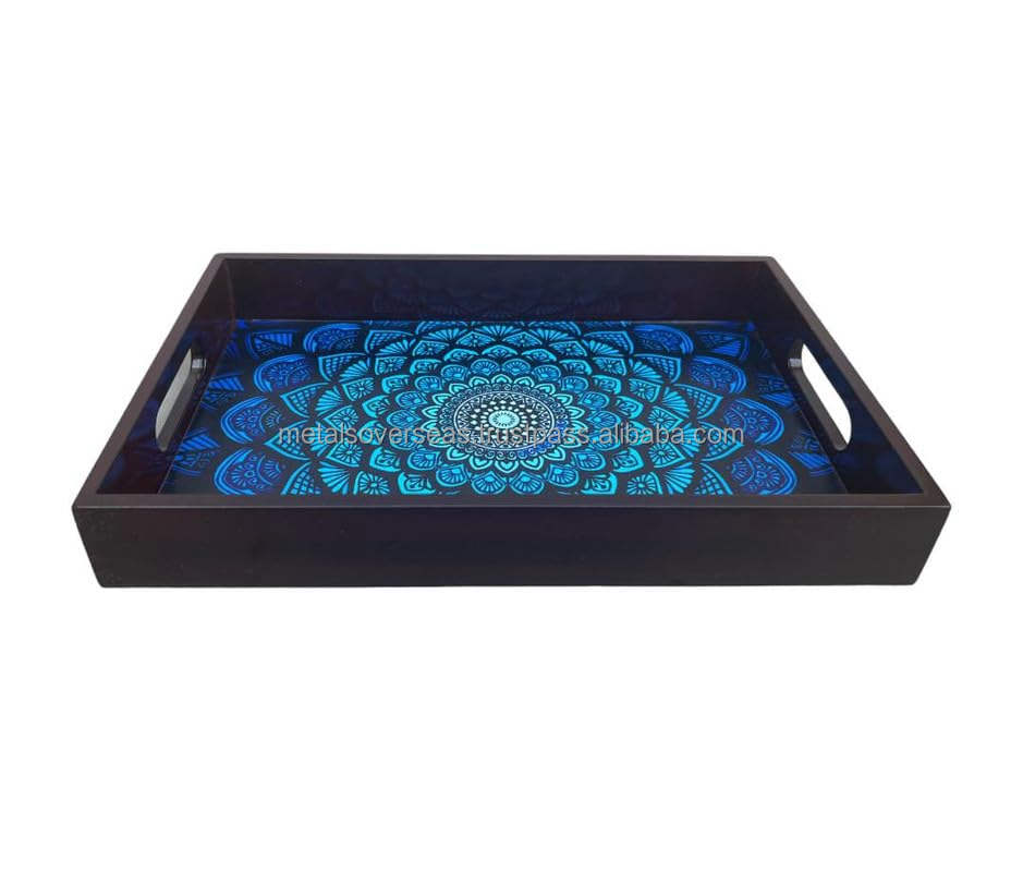 ถาดไม้อาคาเซีย MDF หรูหราพิมพ์ดิจิตอลสำหรับคริสต์มาสปิกนิกใช้งานประจำวันสำหรับขนมปังผลไม้สลัดโลหะงานฝีมือ