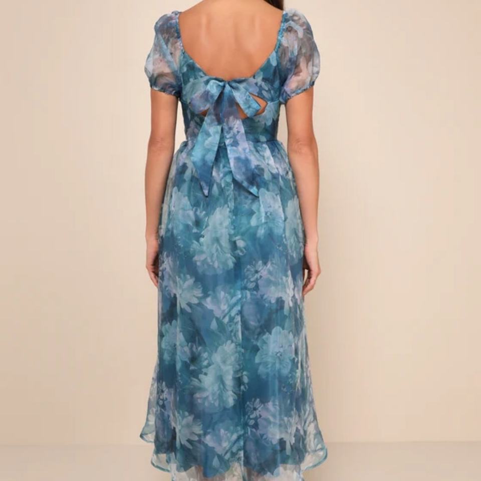 ชุดเดรสยาวปานกลางผ้าออร์แกนซ่าลายดอกไม้สวยงามหรูหราสำหรับผู้หญิง