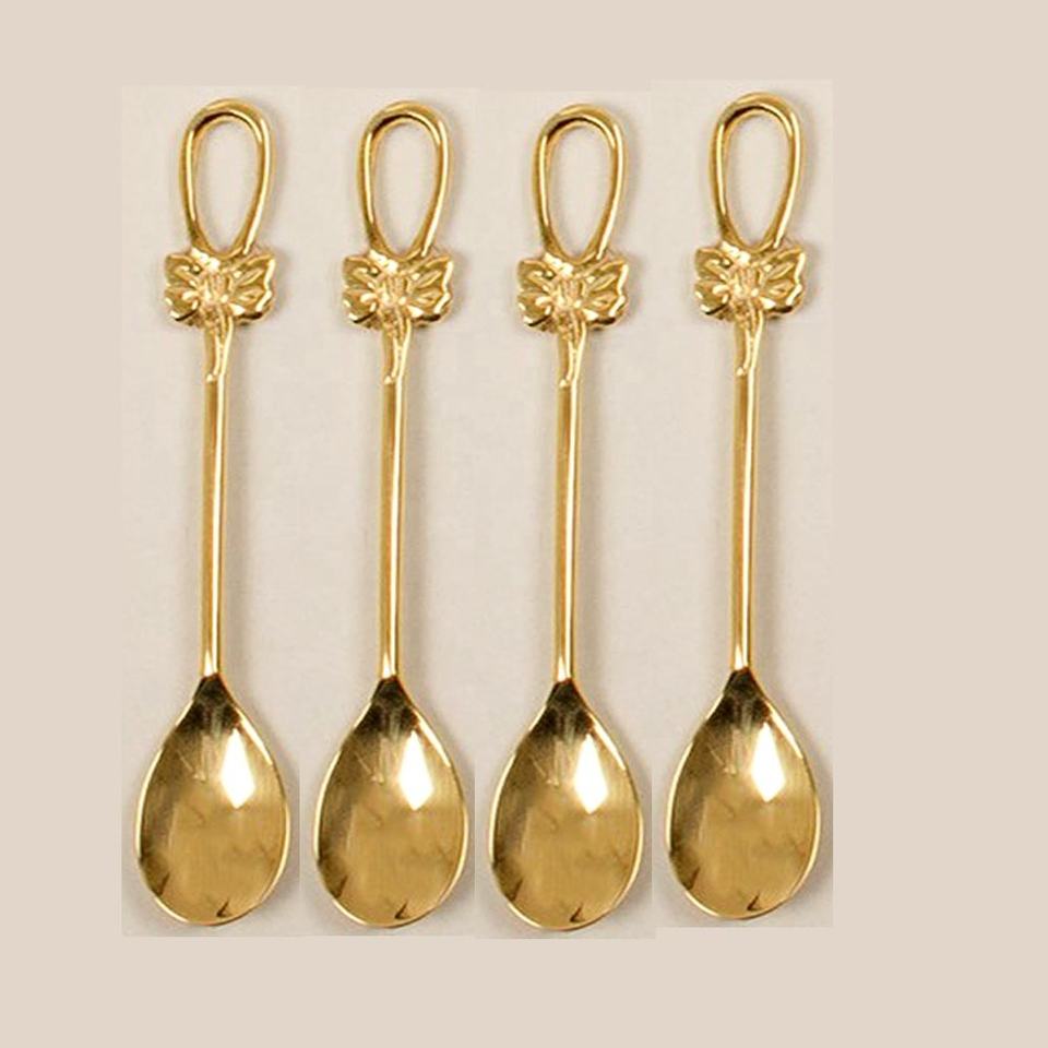ช้อนและส้อมโลหะทำมือ ดีไซน์หรูหรา ด้ามจับรูปโบว์สีทอง สไตล์ใหม่ล่าสุด รูปแบบทันสมัย