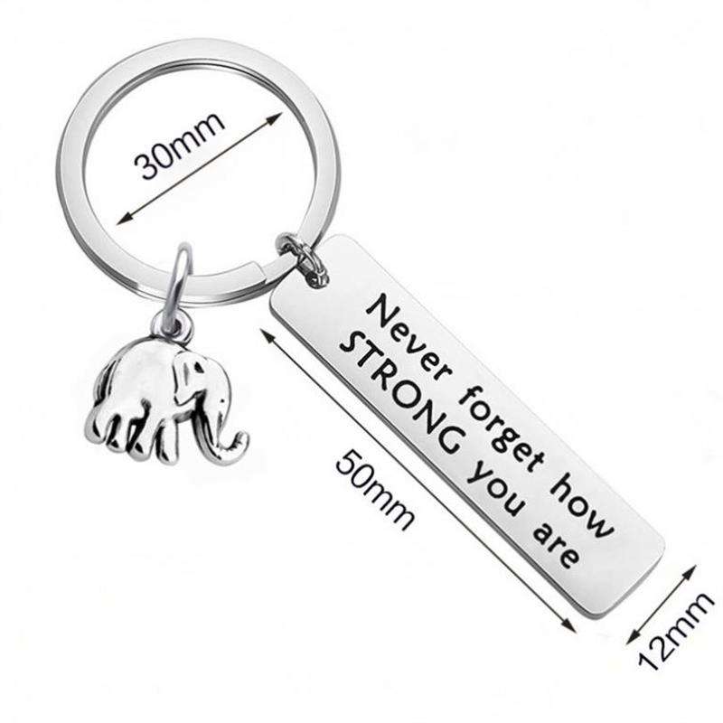 พวงกุญแจช้างแบบกำหนดเองไม่เคยลืมความแข็งแกร่งของคุณเป็นเครื่องประดับของขวัญสำหรับเพื่อนครอบครัวสร้างแรงบันดาลใจโซ่โลหะ
