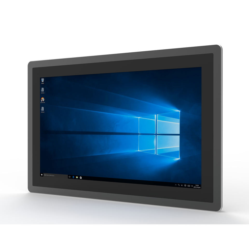 แผงพีซีอุตสาหกรรมหน้าจอสัมผัสแบบครบวงจรแผงควบคุม Win10ฝังที่ไม่มีพัดลมหลายนิ้วกันน้ำได้