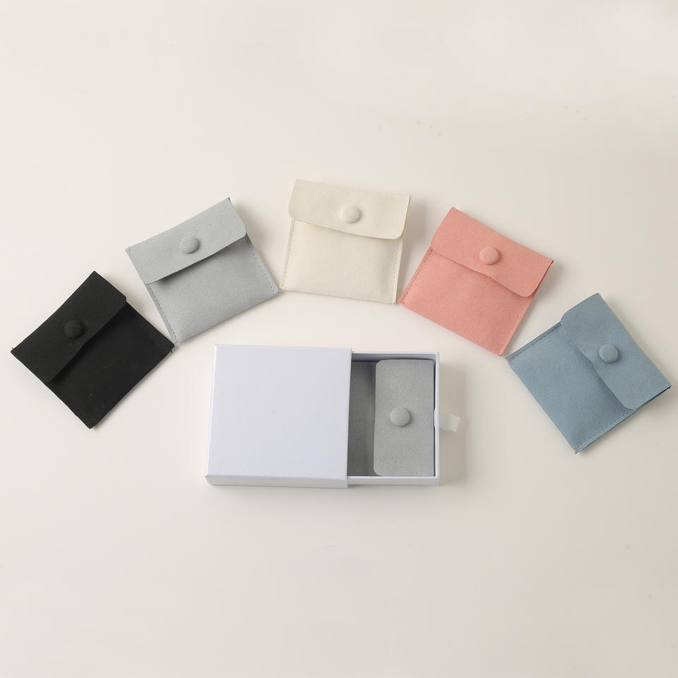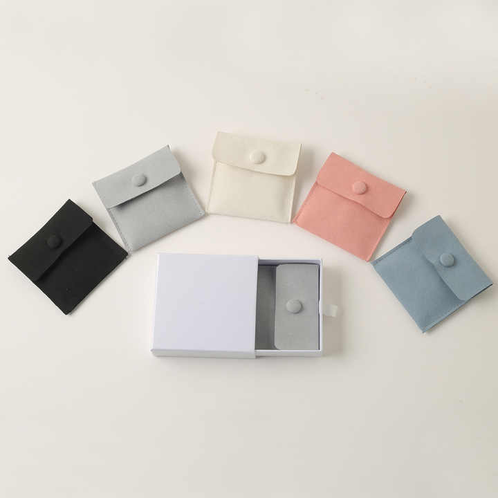 กระเป๋าใส่เครื่องประดับสำหรับเดินทางแบบมีโลโก้ปั๊มนูน กระเป๋าผ้ากำมะหยี่ไมโครไฟเบอร์สำหรับผู้หญิง ปิดด้วยกระดุมแป๊ก สำหรับใส่สร้อยคอ ต่างหู และเครื่องประดับอื่นๆ