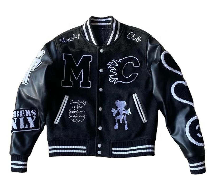 แจ็กเก็ตเลตเตอร์แมนสำหรับผู้ชายแจ็คเก็ตผ้ากำมะหยี่ปักโลโก้ตามสั่งโลโก้ได้ตามต้องการ