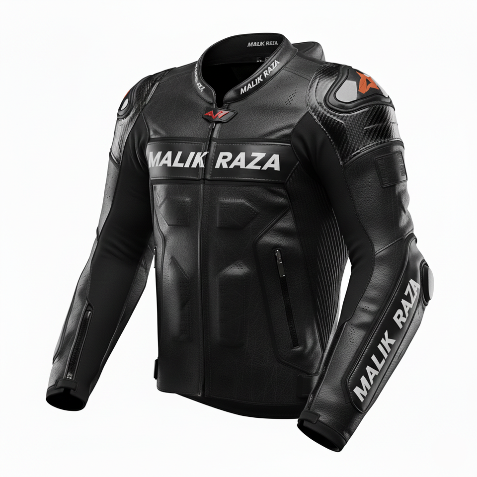 Custom Embroidered Leather Motorbike Jacket for Clubs | MALIK RAZA Bespoke Branding & Patches | High-Quality Wholesale Uniforms