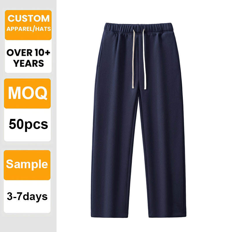 กางเกงวอร์มขายาวทรงตรงสีพื้นแบบลำลองสำหรับทุกเพศ ผ้าฟลีซหนานุ่ม 350 กรัม ปักโลโก้ตามสั่ง