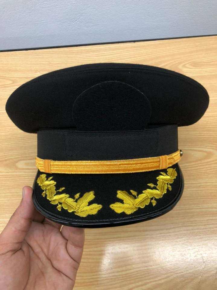 หมวกแก๊ปปักโลโก้สีดำ หมวกนายทหาร หมวกกัปตัน หมวกอัศวินเทมพลาร์ หมวกปีกแหลมสีดำ