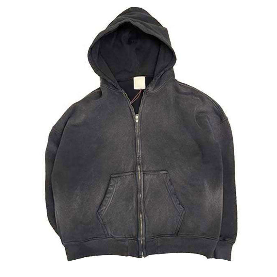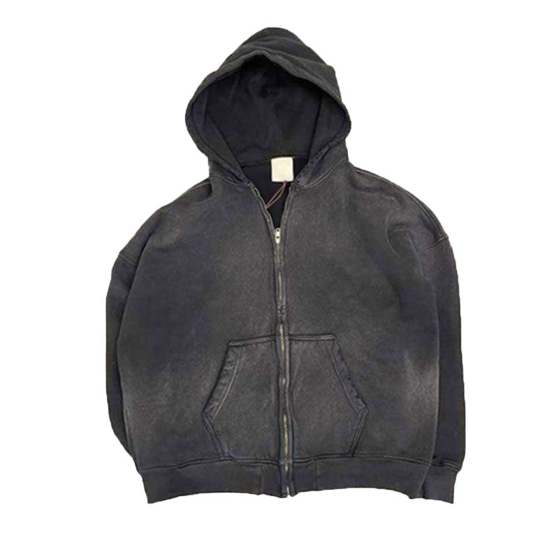 เสื้อฮู้ดซิปอัพสำหรับผู้ชายโอเวอร์ไซส์ปักโลโก้ผ้า500 GSM ผ้าทอลายกรดวินเทจสีพื้นแบบถัก