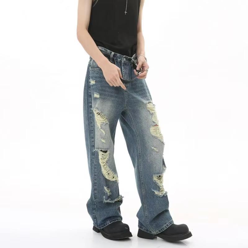 กางเกงยีนส์เดนิมผู้ชายปักลายตามสั่ง ทรงสลิมตรง แฟชั่นสตรีทแวร์ สวมใส่สบาย ผ้าฝ้ายนุ่ม จำหน่ายจำนวนมากจากโรงงาน