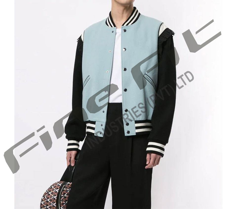 เสื้อแจ็คเก็ตวาร์ซิตี้ปักลายตามสั่งสำหรับผู้ชาย แบบติดกระดุมด้านหน้า สำหรับฤดูใบไม้ร่วง ผ้าควิลท์มาตรฐาน ทำจากขนสัตว์/วิสโคส โพลีเอสเตอร์ เป็นมิตรกับสิ่งแวดล้อม