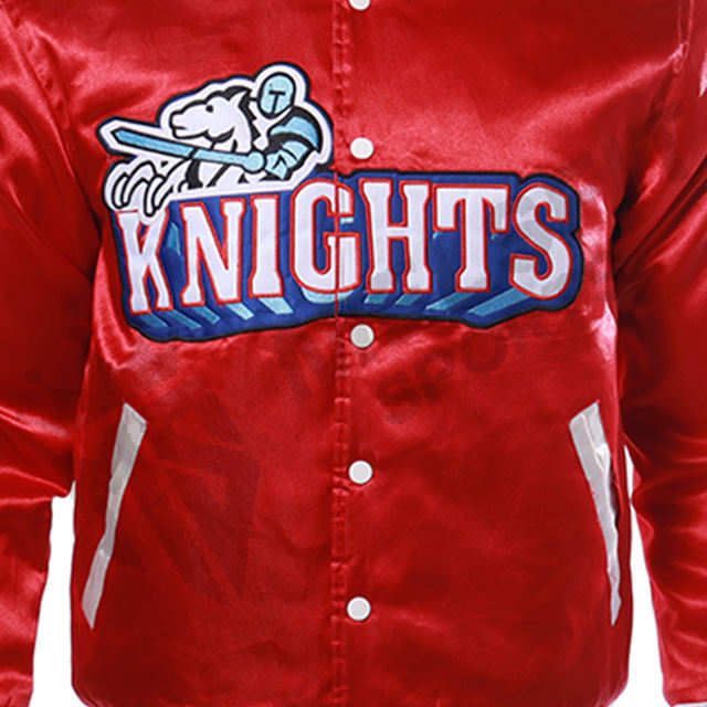 แจ็กเก็ตบอมเบอร์ผ้าไหมซาตินสำหรับผู้ชายปักโลโก้ด้านหน้าคอตั้งลายการ์ตูนออกแบบได้ตามต้องการสำหรับฤดูหนาว