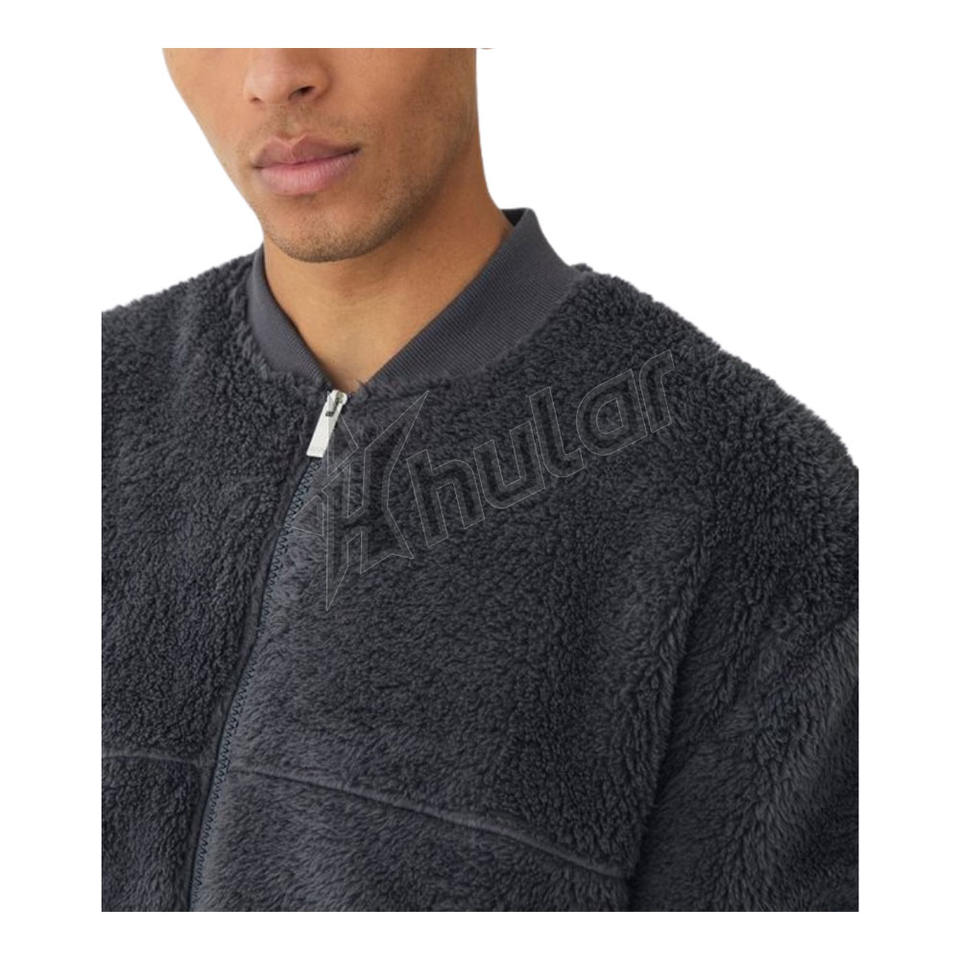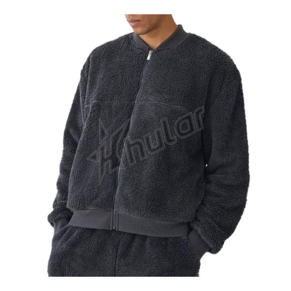 เสื้อแจ็กเก็ตบอมเบอร์คอปกตั้งฤดูหนาวของผู้ชายเสื้อขนสัตว์สีดำแนวสตรีทเสื้อกันลมเสื้อแจ็คเก็ตนักบินผ้าใยสังเคราะห์ออกแบบได้ตามต้องการ