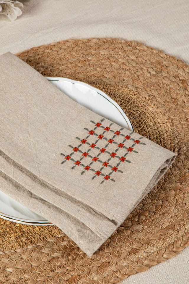 ผ้ากันเปื้อนผ้าฝ้ายลายโมโนแกรมทรงสี่เหลี่ยมผ้าลินินผสมกับสิ่งแวดล้อมใช้ในงานแต่งงานงานปักตามสั่ง