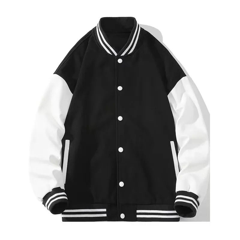 แจ็คเก็ตปักลายตัวอักษรสไตล์วินเทจแจ็กเก็ตฤดูหนาวเสื้อเบสบอลแขนเสื้อหนัง PU