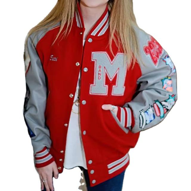 เสื้อแจ็คเก็ตปักลายแบบกำหนดเอง ออกแบบโลโก้ของคุณเอง เสื้อแจ็คเก็ตผู้หญิง เสื้อแจ็คเก็ตวาร์ซิตี้ผู้หญิงแบบกำหนดเอง
