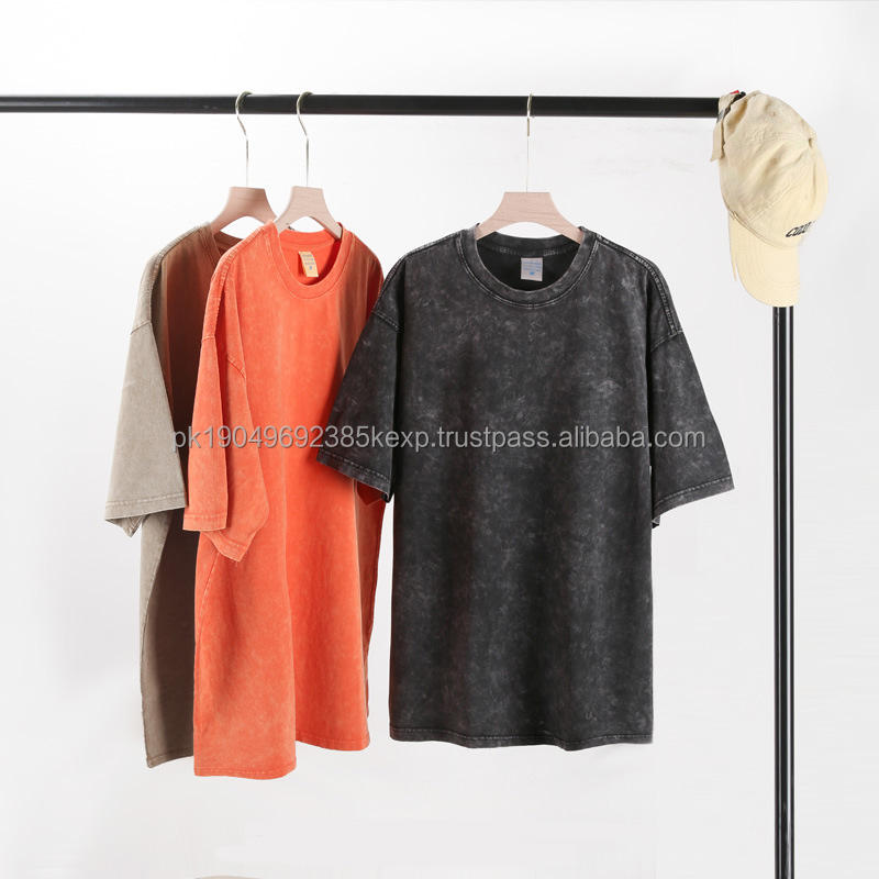 Custom Embroidered Private Label Streetwear T-Shirt Short Sleeve Heavy Cotton Vintage T Shirts Acid Washed Shirts