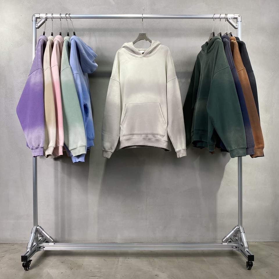เสื้อฮู้ดดี้แบบสตรีทโอเวอร์ไซส์ลายพิมพ์ดิจิตัล360GSM สเปรย์ย้อมสีแบบวินเทจ