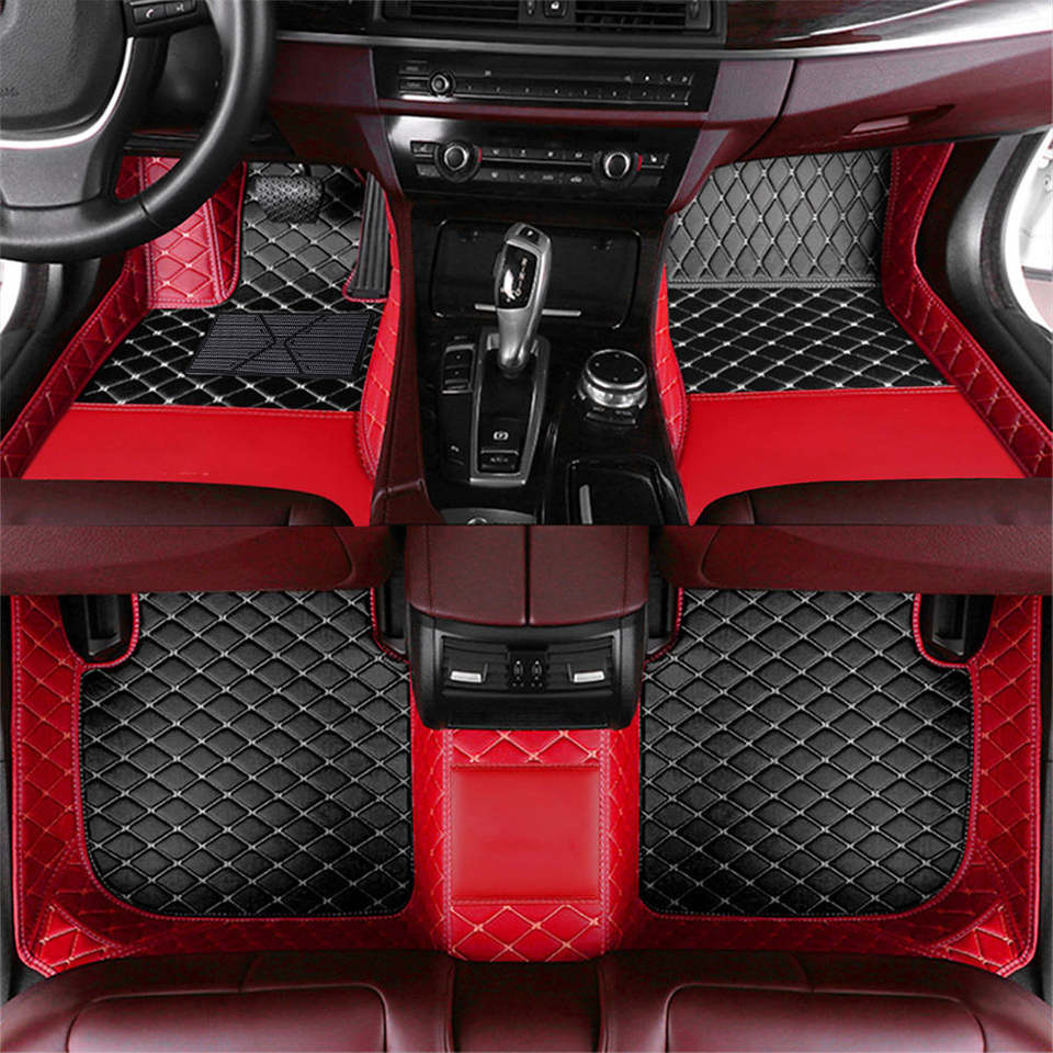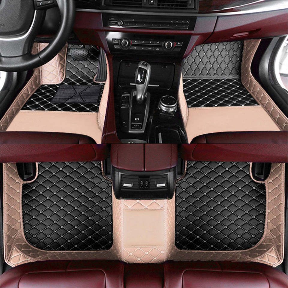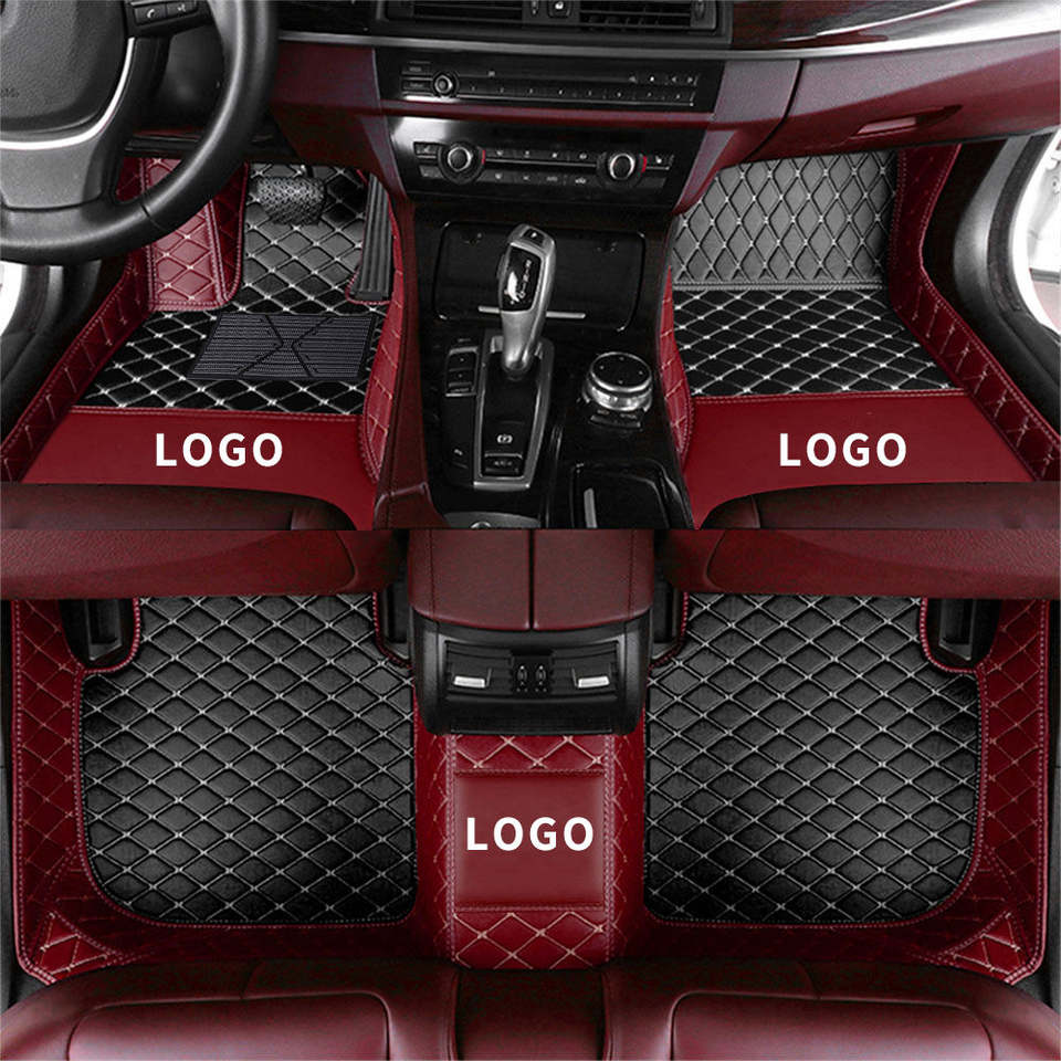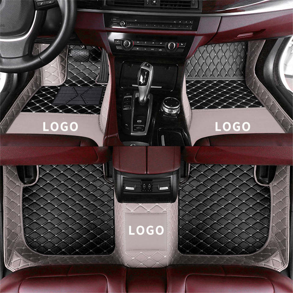 พรมปูพื้นรถยนต์หนังสองสีแบบสั่งทำพิเศษ ดีไซน์เฉพาะตัว ปักลายตามสั่ง คุณภาพสูง หรูหรา หนา 10 มม.