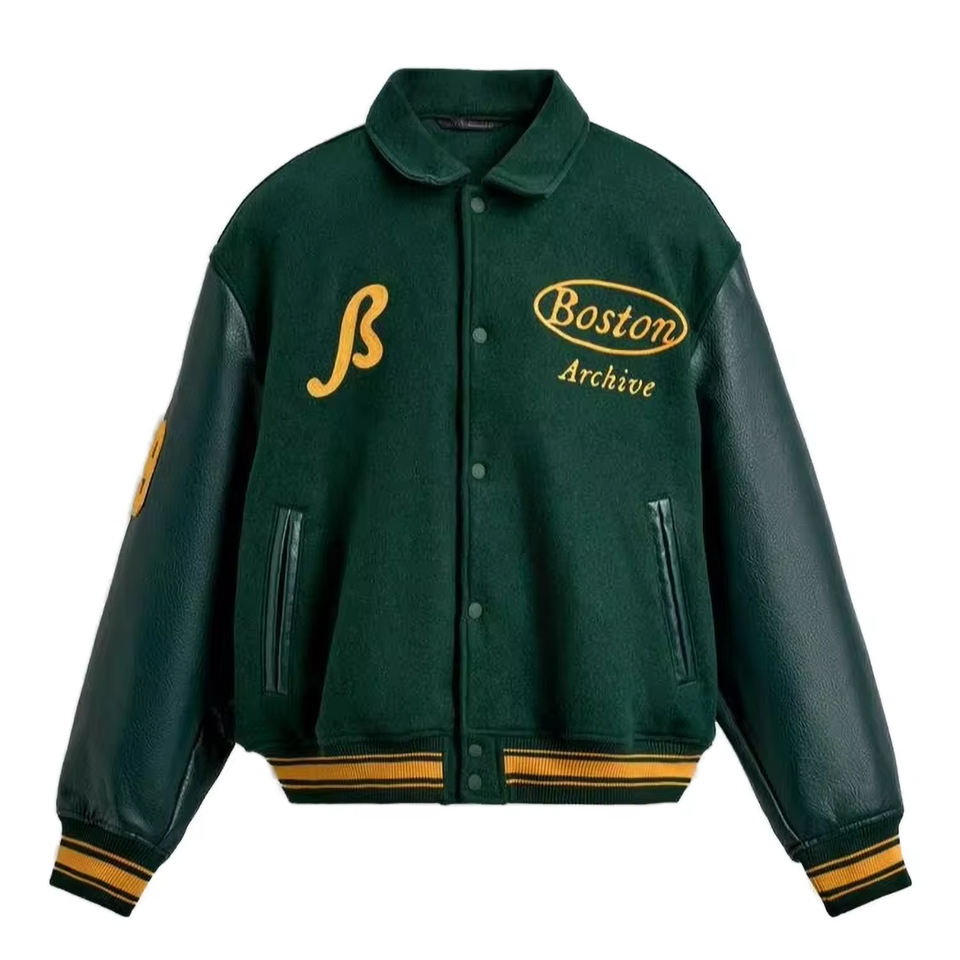 แจ็คเก็ตวาร์ซิตี้ปักลายตามสั่ง แขนหนัง PU สไตล์วินเทจ สำหรับผู้ชายและผู้หญิง รับผลิตจำนวนมากแบบ OEM