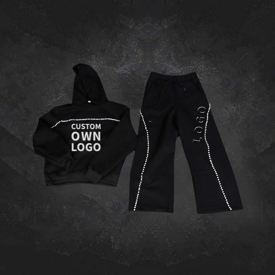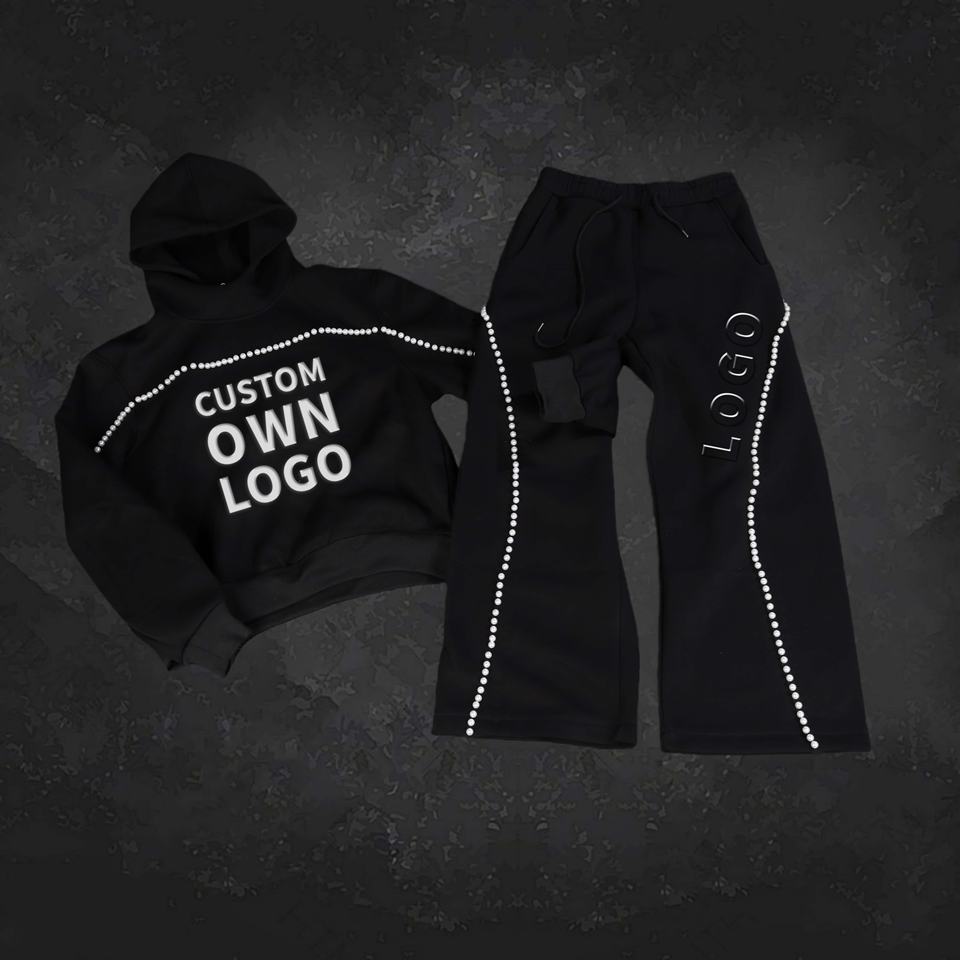 ชุดวอร์มสองชิ้นชุดจ๊อกกิ้งผู้ชายเสื้อสวมหัวแบบหนักและกางเกงวอร์มทรงหลวมออกแบบปักลายได้ตามต้องการ
