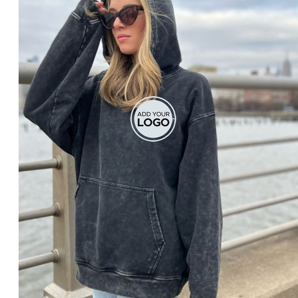เสื้อฮู้ดผ้าฟลีซถักแบบมีกระเป๋าพิมพ์ลาย DTG เสื้อมีฮู้ดซักกรดสำหรับฤดูหนาวออกแบบได้ตามต้องการ