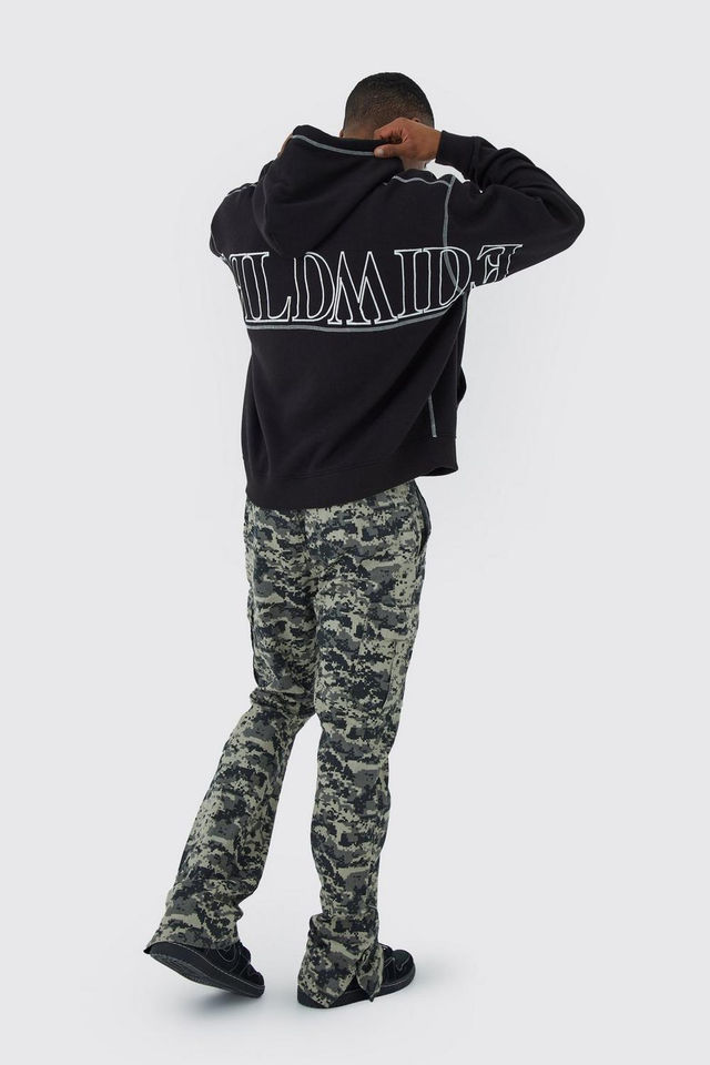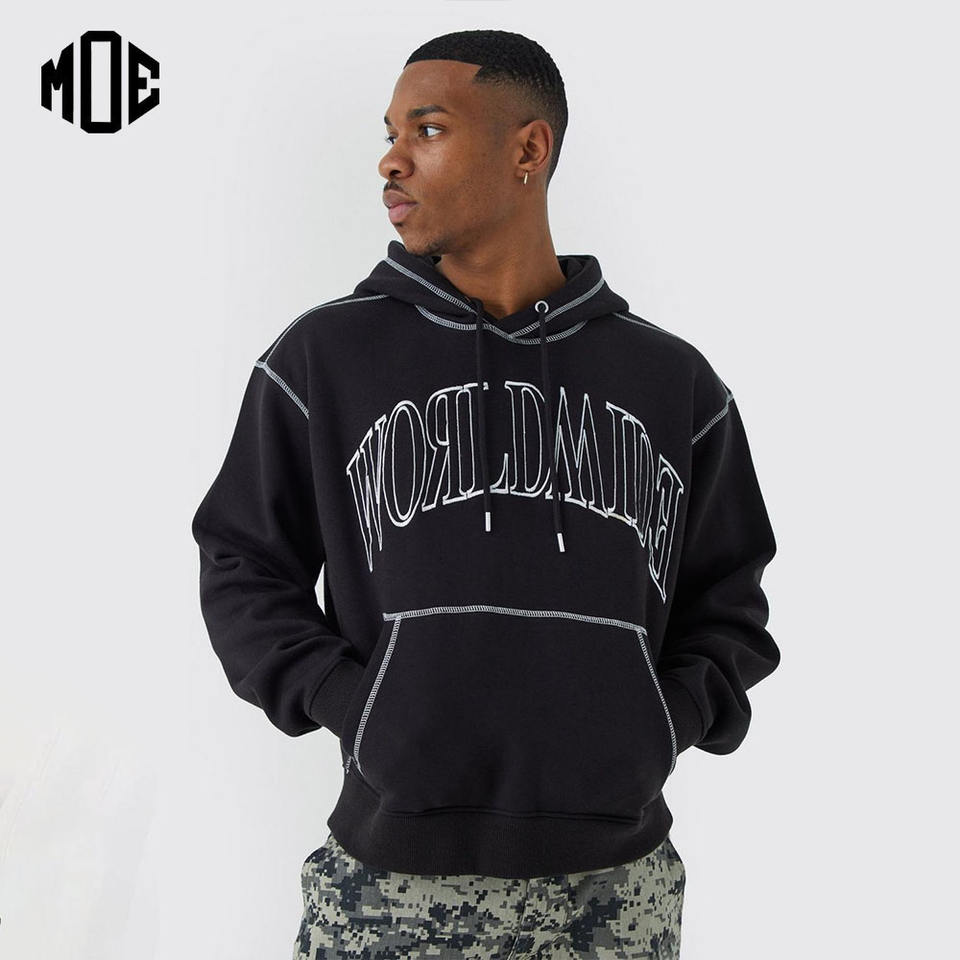 เสื้อมีฮู้ดเปิดไหล่สำหรับผู้ชายเสื้อมีฮู้ดผ้าหนามีตะเข็บสีตัดกันทรงโอเวอร์ไซส์