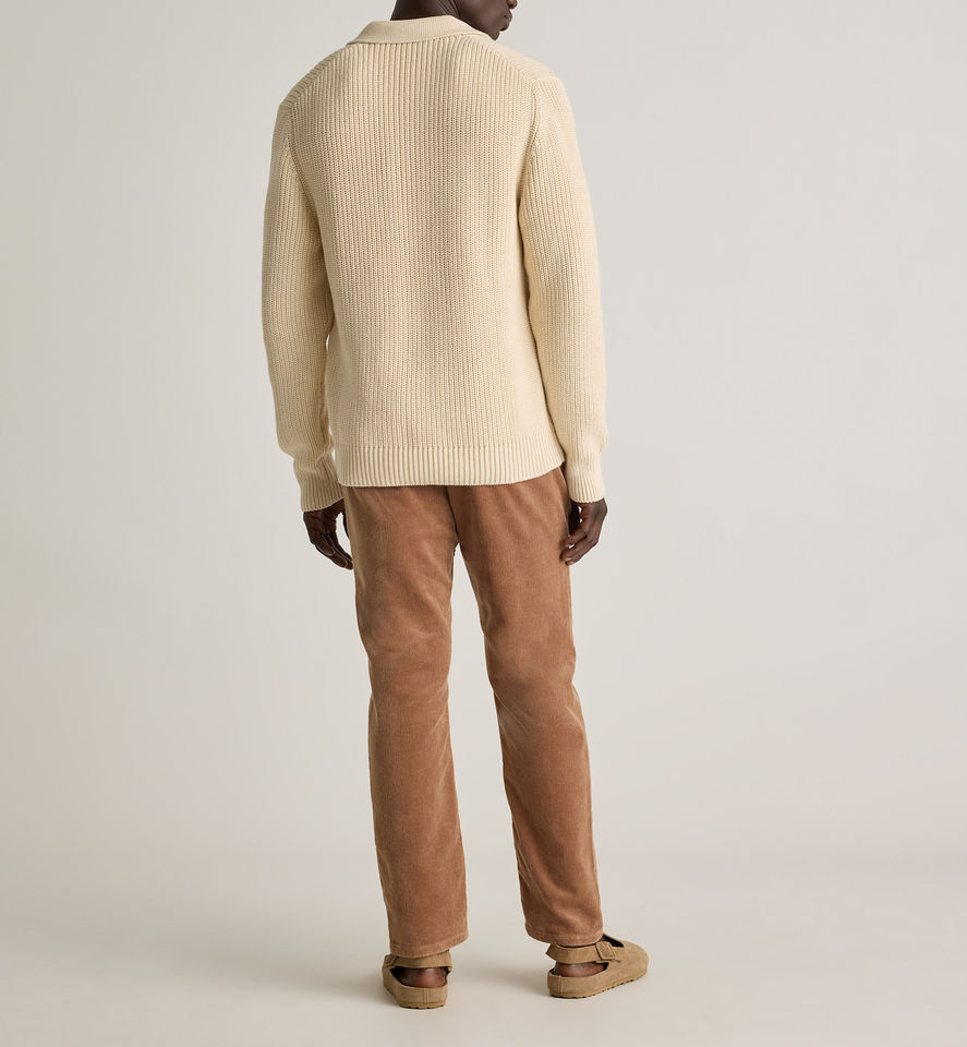เสื้อสเวตเตอร์ถักคอตตอนแขนยาวเสื้อโปโลสำหรับผู้ชายเสื้อสเวตเตอร์ถักแบบดั้งเดิม100% โลโก้แบรนด์ออกแบบได้ตามต้องการ