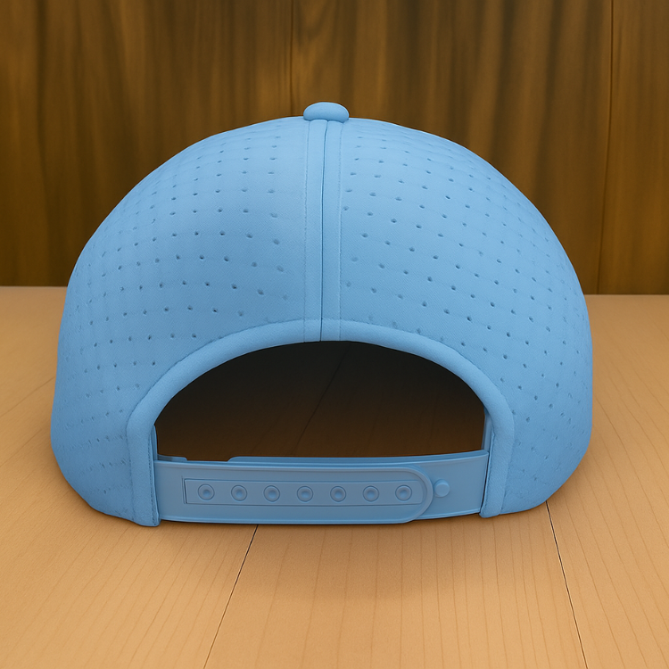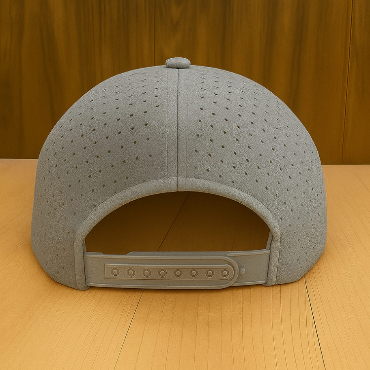 หมวกเบสบอล6แผงผ้าคอตตอนหรือโพลีเอสเตอร์หมวกปรับได้สำหรับผู้ชาย OEM สไตล์กอล์ฟมีรูตัดด้วยเลเซอร์