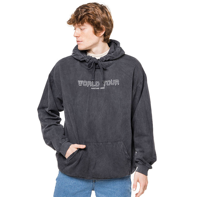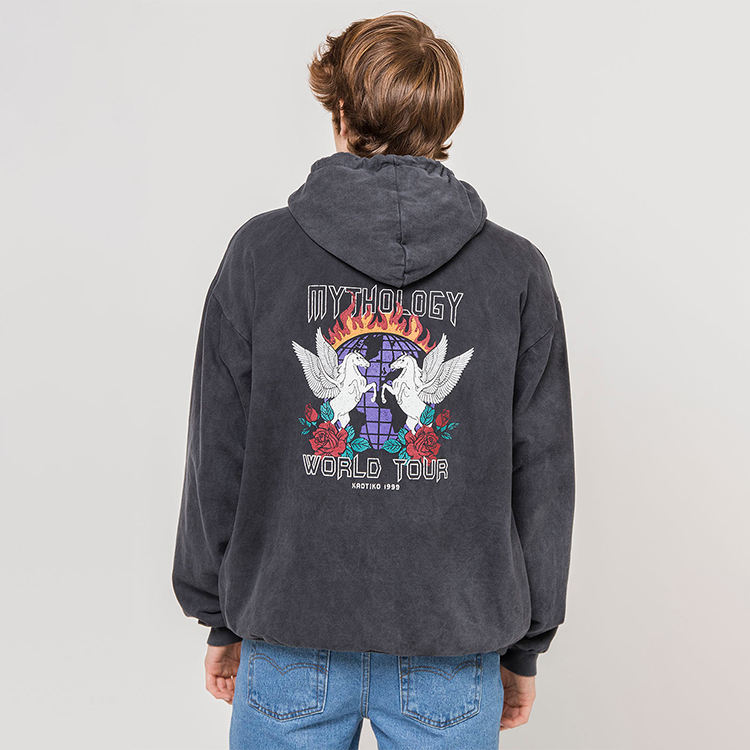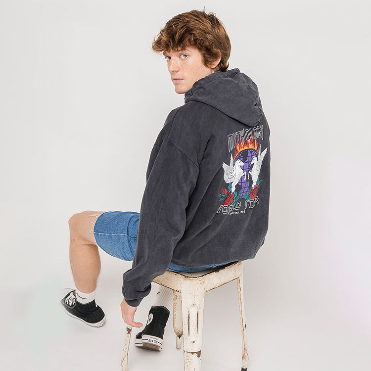 เสื้อฮู้ดฟอกสีพิมพ์ลายกำหนดเอง OEM
