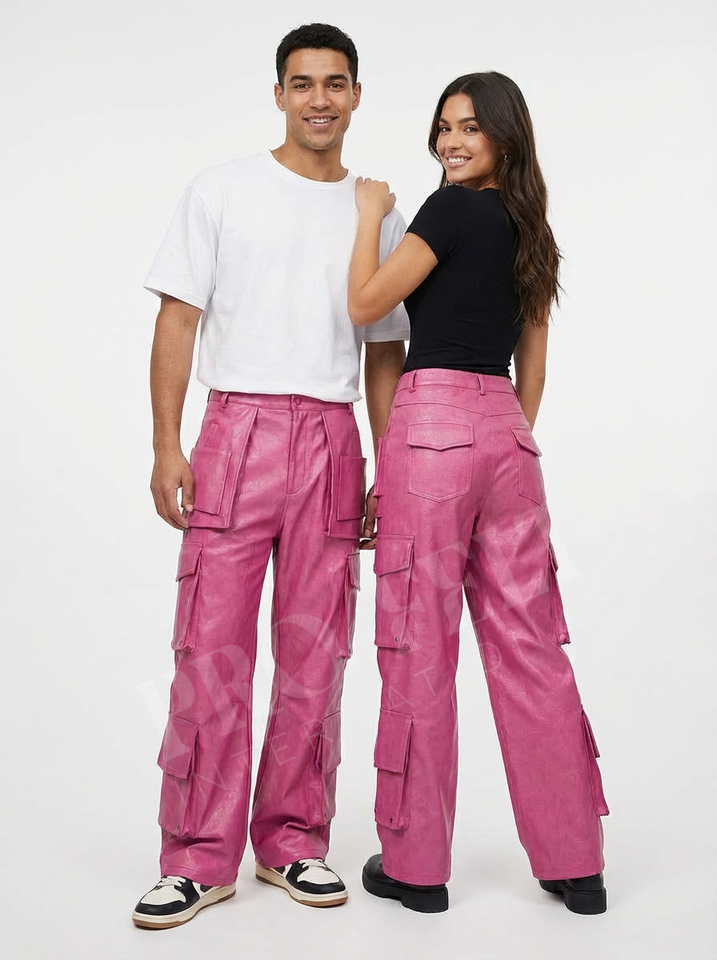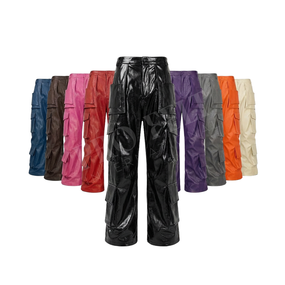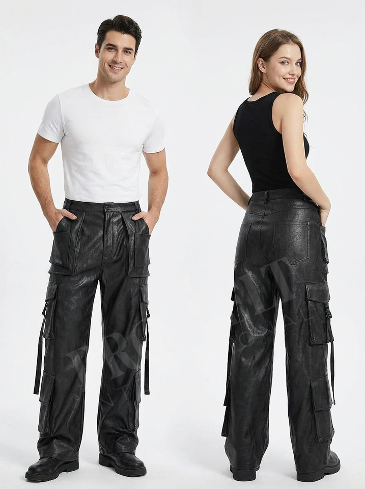 กางเกงคาร์โก้หนัง PU ปักโลโก้ตามสั่ง กันลม ระบายอากาศได้ดี ทรงขากว้าง มีกระเป๋าอเนกประสงค์ สไตล์สตรีทแฟชั่นลำลอง