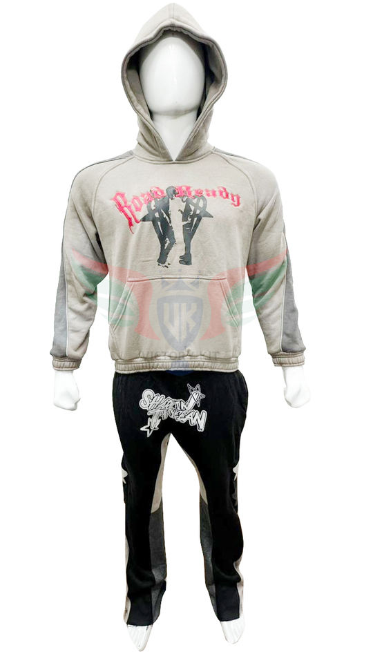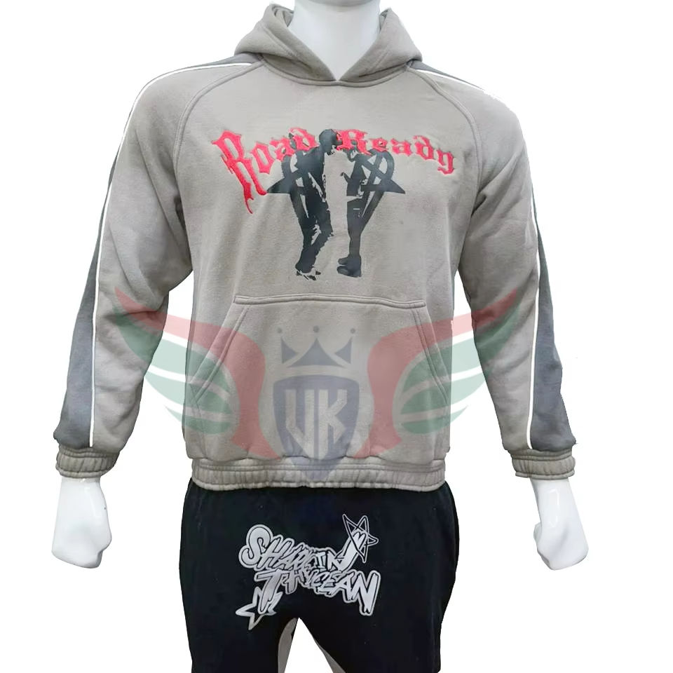 เสื้อฮู้ดดี้ผู้ชายปักลายเอง สไตล์วินเทจ ผ้าฟลีซ ล้างสีแบบวินเทจ ลายทาง สำหรับฤดูหนาว สวมใส่สบาย