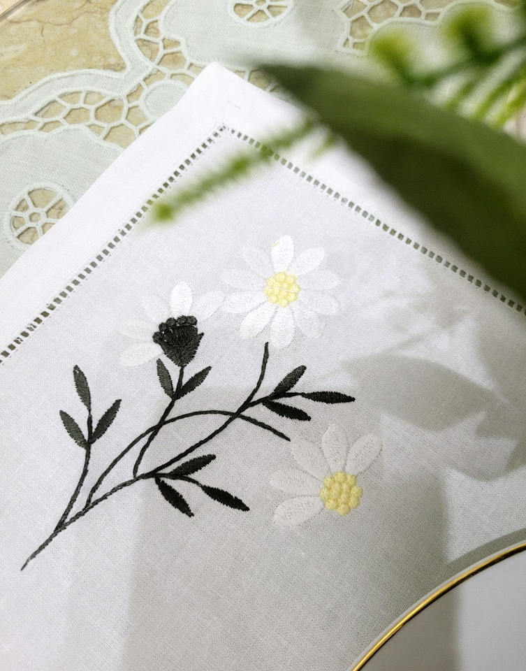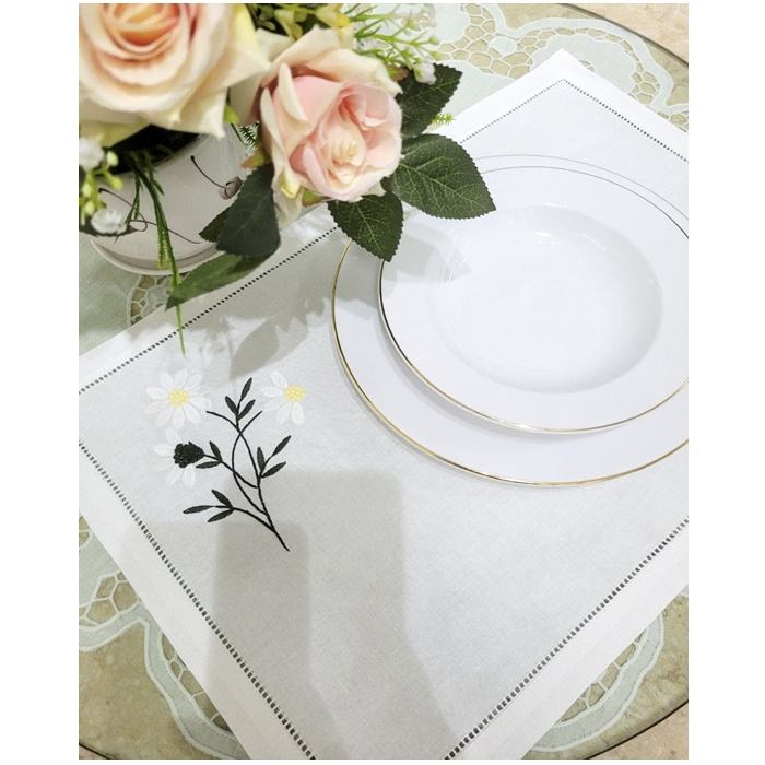 Custom Embroidery White Cotton Hemstitch Coasters Pretty White Daisy Mat for Home Restaurant Wedding Embroidery Placemat
