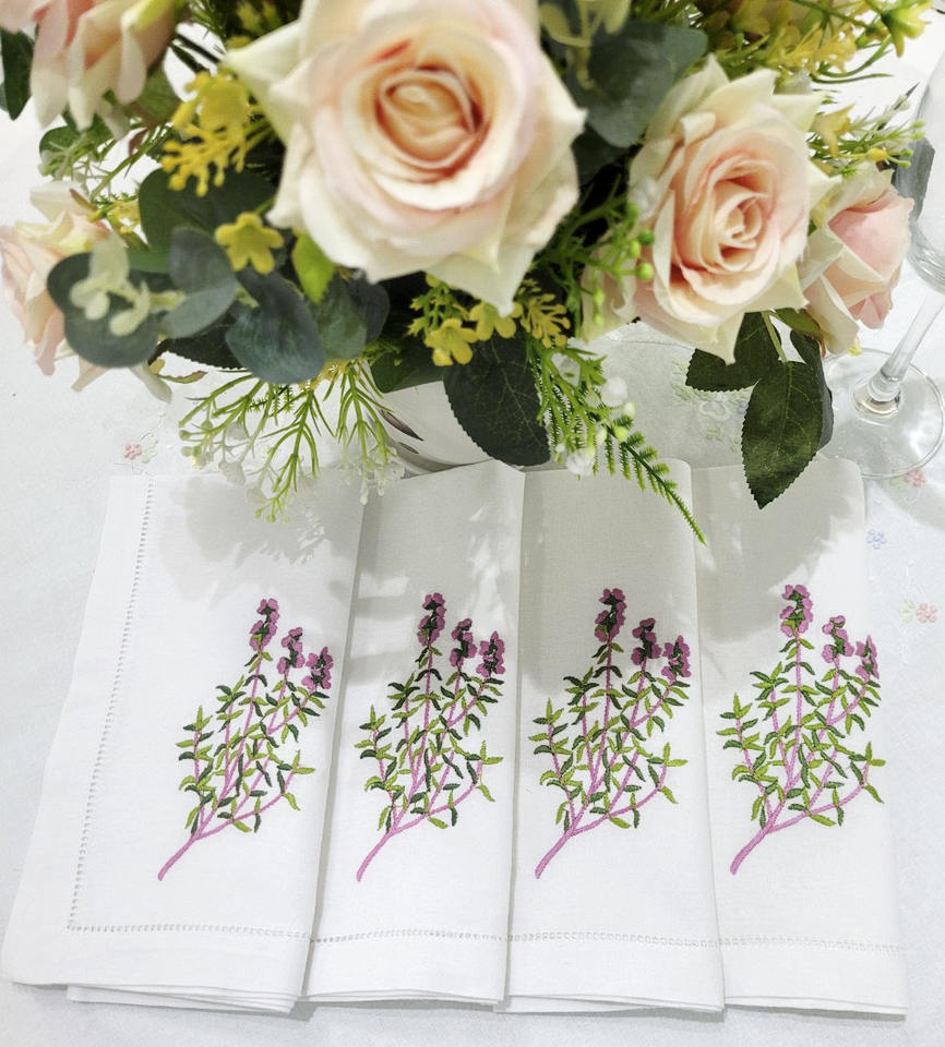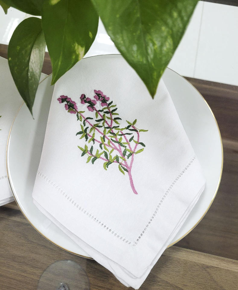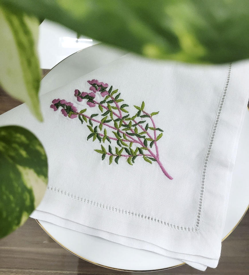 ผ้าเช็ดปากบนโต๊ะผ้าคอตตอนแบบซักได้ผ้าเช็ดปากดีไซน์โรสแมรี่งานปักตามสั่งสำหรับบ้านและโรงแรม