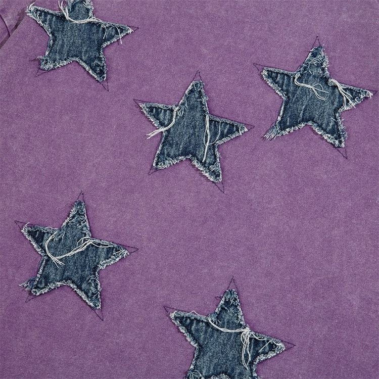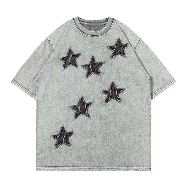 เสื้อยืดโอเวอร์ไซส์ปักลายดาวแบบกำหนดเอง ผ้าฝ้ายฟอกสีสไตล์วินเทจ สำหรับผู้ชายใส่ลำลองในฤดูร้อน