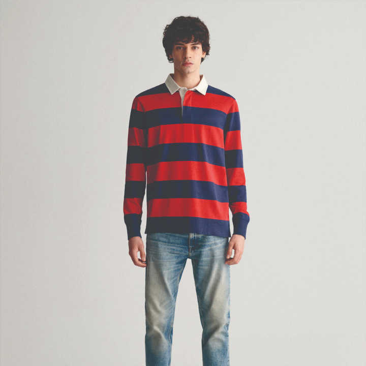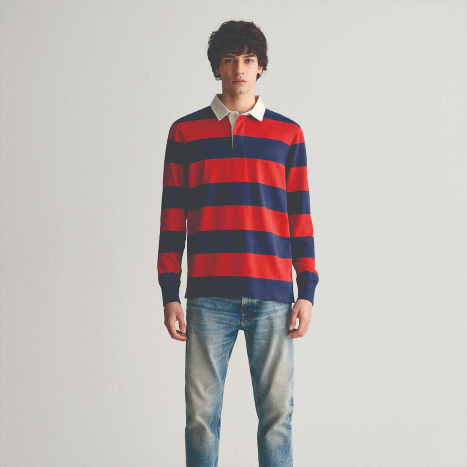 เสื้อรักบี้ผ้าฝ้ายลายทางพิมพ์ลายตามสั่ง สวมใส่สบายสำหรับผู้ชาย ป้องกันแบคทีเรีย แบบไม่มีแขน คอวี สำหรับขายส่งและปรับแต่งได้