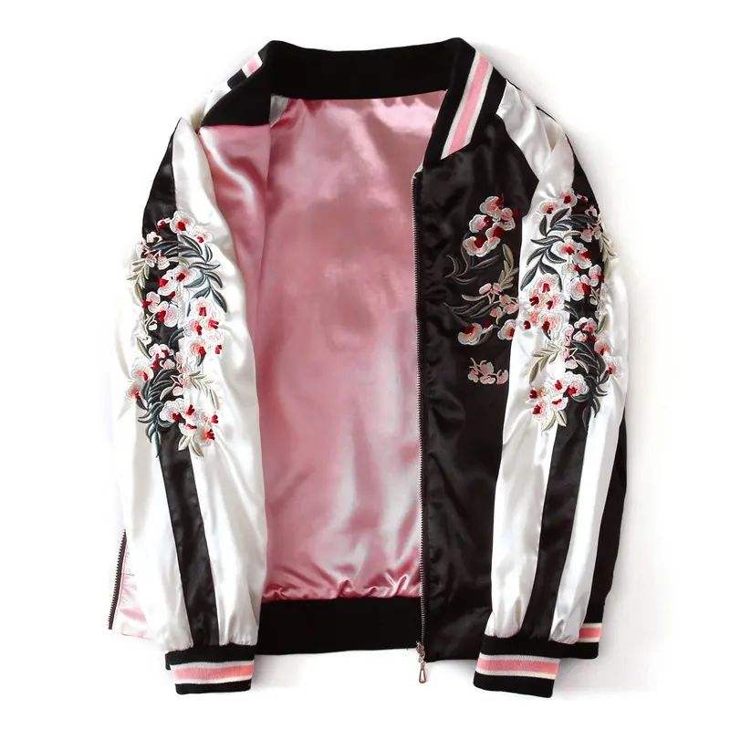 เสื้อแจ็คเก็ตบอมเบอร์ผ้าซาตินปักลายตามสั่งสำหรับผู้หญิง ซับในผ้าขนสัตว์ ระบายอากาศได้ดี เป็นมิตรกับสิ่งแวดล้อม กันลม สไตล์วาร์ซิตี้ เบสบอล สำหรับฤดูหนาว