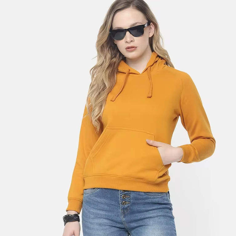 เสื้อฮู้ดผู้หญิงปักลายตามสั่ง แขนยาว ผ้าฝ้าย 100% โลโก้ด้านหน้า ระบายอากาศได้ดี ผลิตในปากีสถาน