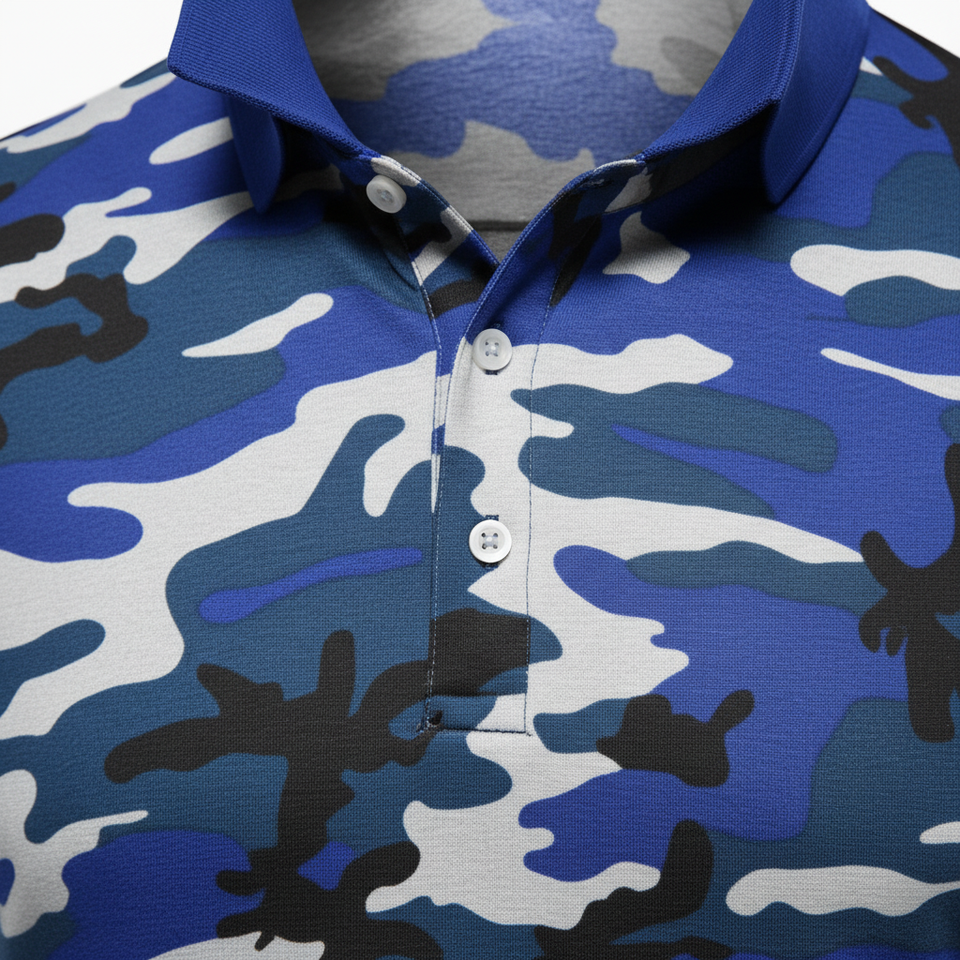 เสื้อโปโลกอล์ฟปักโลโก้ตามสั่ง ผ้าถักยืดได้ 4 ทิศทาง พิมพ์ลายแบบซับลิเมชั่น แขนสั้น ระบายอากาศได้ดี ติดกระดุม