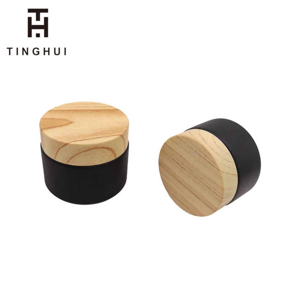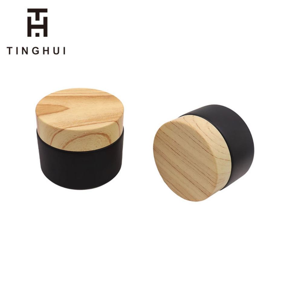 กระปุกครีมเนยบำรุงผิวแบบฝ้าสีอำพันดำ ขนาด 30 กรัม 50 กรัม 100 กรัม 50 มล. 100 มล. กระปุกแก้วเครื่องสำอางแบบฝ้าพร้อมฝาไม้ไผ่